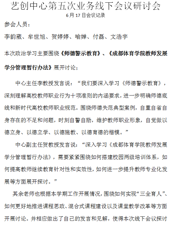 本次学习主要围绕《师德警示教育》、《太阳成集团tyc9728教师发展学分管理暂行办法》进行讨论和学习。