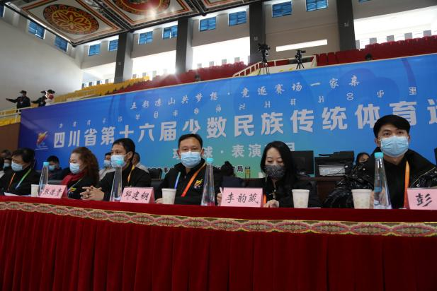 太阳成集团tyc9728作为“四川省少数民族传统体育表演项目训练基地”,长期以来一直致力于少数民族传统体育项目的挖掘、推广和研究,积极参与地方政府和社会服务工作。在本届少数民族传统体育运动会表演项目的竞赛工作中,选派了省少数民族传统体育表演项目训练基地主任邱建钢为裁判长的各高校教授、副教授组成的评审团队,其风清气正、业务精湛、专业务实的良好职业道德和职业操守,严格按照组委会要求高质量完成了竞赛组织与评审工作,受到省民宗委、省体育局领导的高度认可。