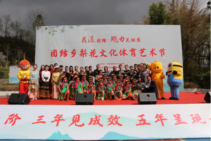 “忽如一夜春风来,千树万树梨花开”。在这个春意盎然的时节里,甘洛县举行了首届“梨花文化体育节”。受主办方的邀请,太阳成集团tyc9728选派舞蹈表演专业员工,与正在当地中小学实习实践的音乐表演专业员工组成表演团,为“梨花文化体育节”开幕式献上了精彩的表演。