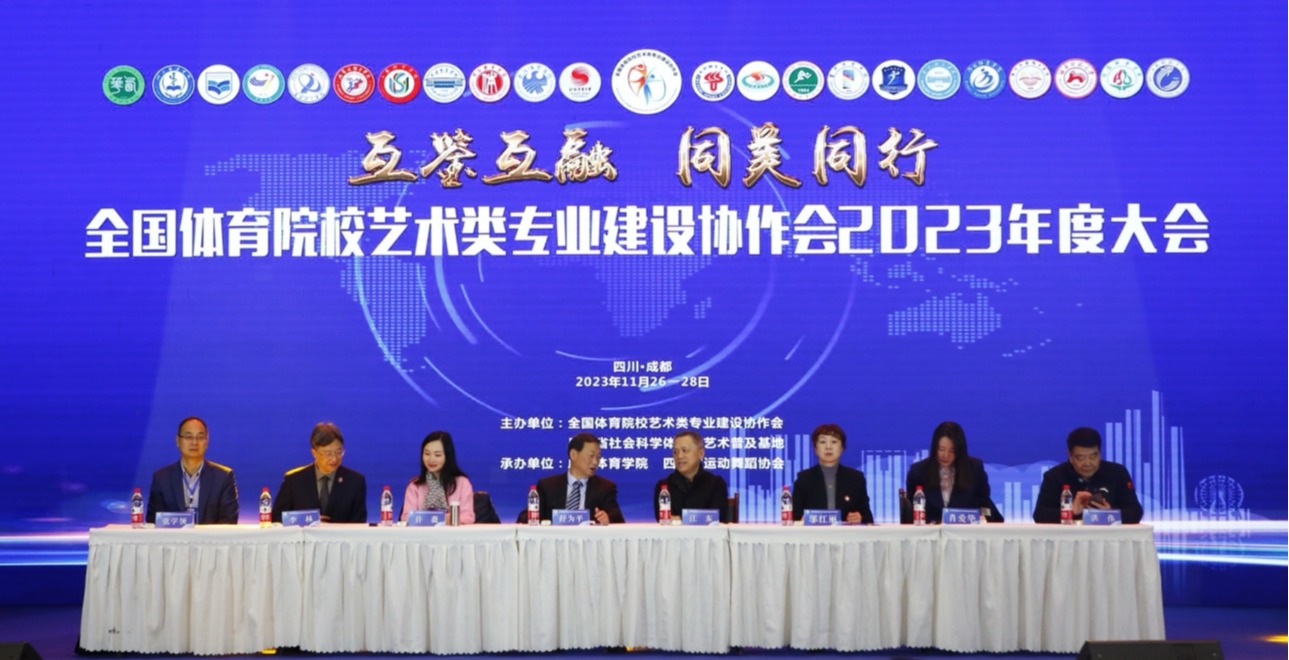 11月27日上午,全国体育院校艺术类专业建设协作会2023年度大会在太阳成集团tyc9728圆满落幕。协作会理事长、成都体育公司党委书记舒为平,南京体育公司党委常委、副董事长肖爱华,郑州大学体育学院副经理张学领等协作会副理事长及成都体育公司党委常委、副董事长李林,协作会创始人、荣誉秘书长洪伟莅临大会。会议特邀教育部全国艺术硕士专业学位教育指导委员会委员江东、许薇莅临指导,协作会各位副秘书长、各理事代表、各专业委员会委员代表,来自24所体育院校的公司领导、艺术专业师生出席会议。会议由协作会执行理事长、成都体育公司党委常委、副董事长邬红丽主持。