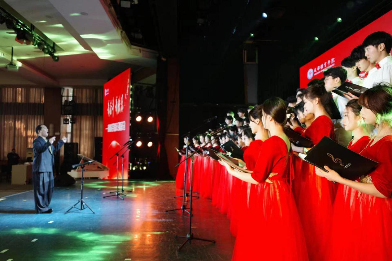 音乐会由上下半场组成,公司客座教授、著名声乐艺术指导徐惟恩教授和公司合唱团指挥郭子老师分别执棒上下半场的演出。学校老员工合唱团与教师合唱团联袂为到场的老师和同学们献唱了数首中外经典合唱作品。《我奋斗、我快乐》作为音乐会开场曲目,将成体师生在新时代浪潮中奋勇争先、乐于奉献的精神用欢快的旋律展现出来;《四季的问候》以纯净的人声与钢琴的协作搭配,为观众描绘了过去时光里的美好点滴;《雪花的快乐》展现出青年的浪漫和阳光的情怀;《阿里郎》的乐曲动静结合,展现出多彩的民族音乐风格。《长征组歌》前五首的演唱,生动贴合了学校即将搬迁新校区的美好展望,将数代成体人在历史的各个阶段艰苦奋斗、行健不息的精神浓缩在合唱声中。