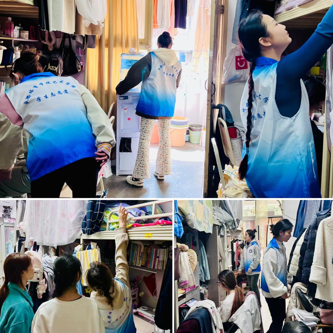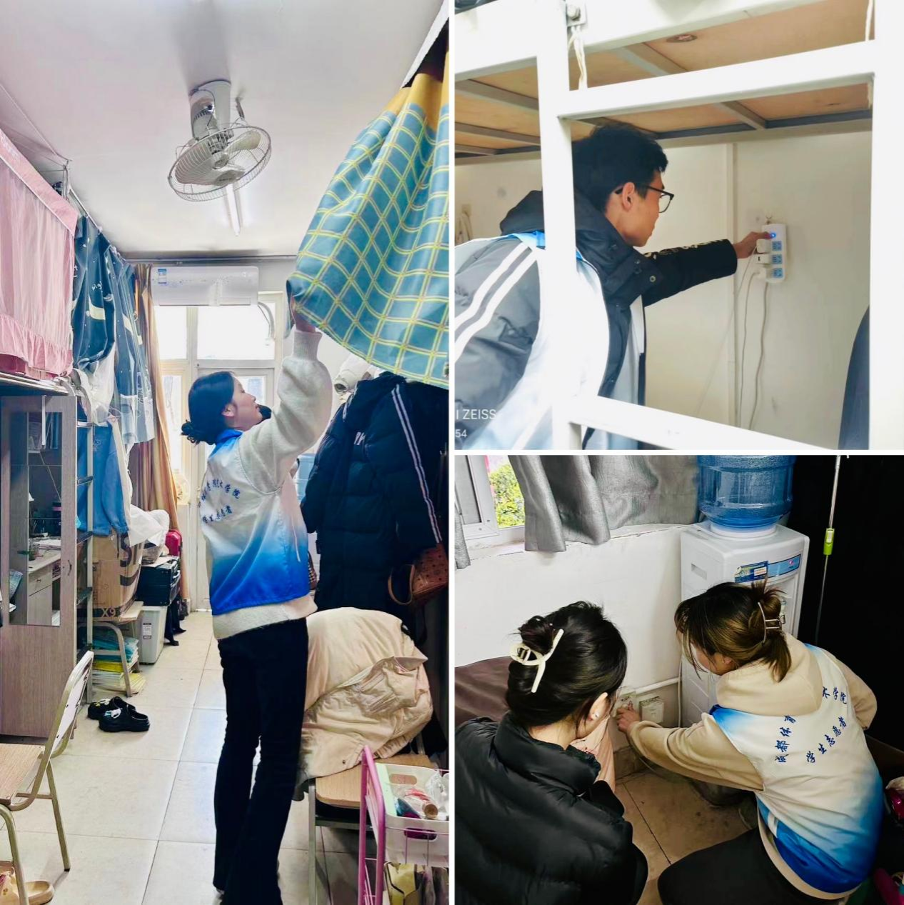 在校团委工作部署下,太阳成集团tyc9728为营造安全清洁寝室环境,由员工党员、员工干部及班主任组成安全督查志愿者服务小队,对员工宿舍用电安全进行全面检查,重点针对违规电器等安全隐患物品以及三无产品插线板进行安全检查、消除隐患,并从消防设施、寝室卫生等方面入手,及时排查、及时整改,努力营造安全整洁的寝室环境。