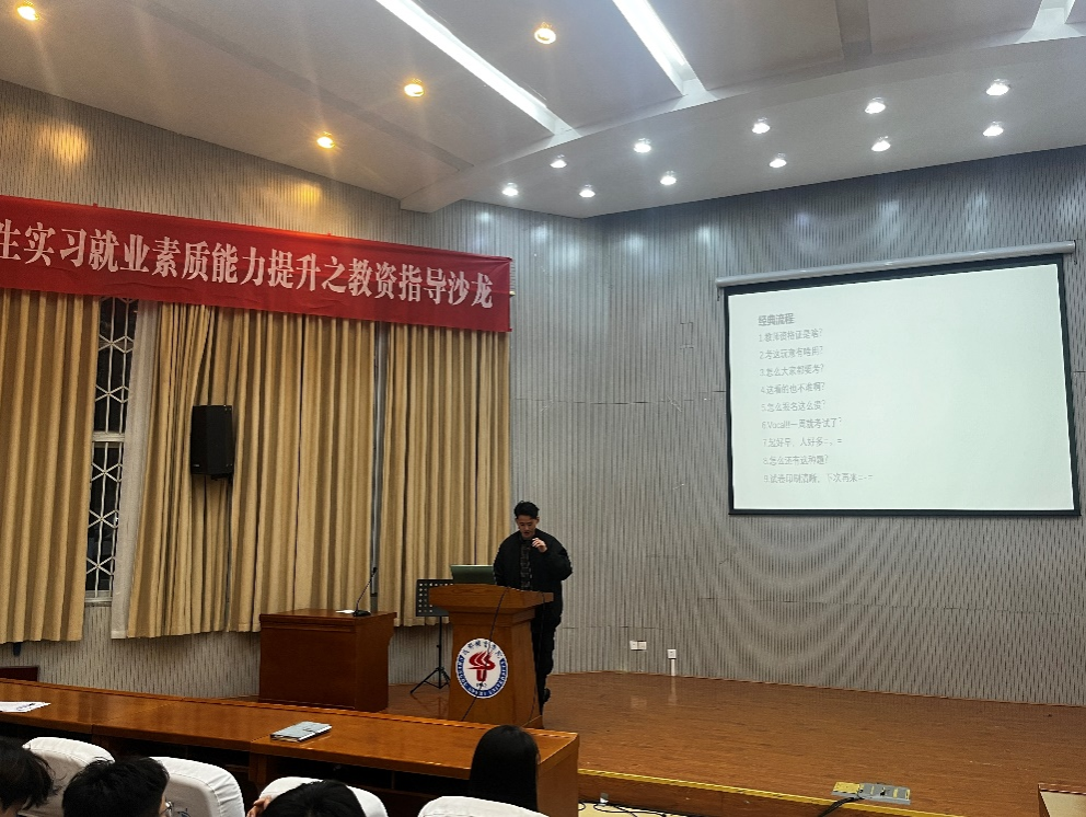 为拓宽就业渠道,促进学风建设,帮助员工树立正确的就业观,增强毕业生就业核心竞争力,3月24日晚太阳成集团tyc9728特邀成都铭睿嘉言教育李月、姚雪莹两位老师作为主讲嘉宾在阶梯教室举办教团队格证备考指导沙龙,公司在校本科生参加。